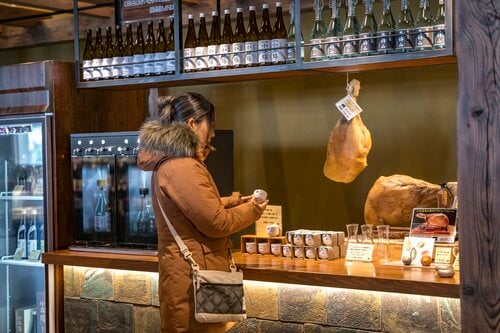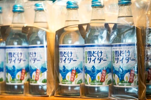 新商品だという「Tsuga Gin(ツガ・ジン)」は、この道の駅オリジナルのクラフドジン。小谷村の森を象徴する、キハダの実や山椒、ツガ、クロモジなどが原料に使われている。そのまま飲んでもいいし、同じくオリジナル品の「雪どけサイダー」で割るのもおすすめとのこと。また、かわいらしいラベルが目を惹く日本酒も並ぶ。小谷村産の酒米「ひとごこち」を使用した、純米酒の「月波ノ月」と普通種の「月波ノ波」の2種類で、いずれも熱燗で飲むのがおすすめの辛口酒だ。