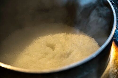 「道の駅 おたり」で見逃せないグルメといえば、「かまど飯処 鬼の厨」で味わうかまど炊きごはん。かまどの直火で炊いた小谷産コシヒカリは、つやがあり、口に含むとふっくらしていて甘みと粘りがある。