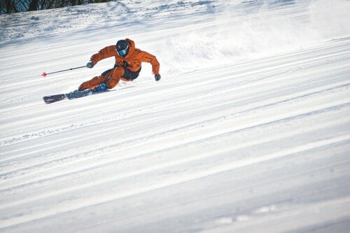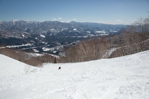 そして、一度は滑って欲しい斜面が「国体男子コース」だ。ここは1,800mもの距離が上から下までずっと非圧雪。途中で休憩を挟まないと太ももがパンパンになるほど。雪が降った後は天国。他人が滑ったラインがついてくるとバンピーな斜面になり、フリーライドの練習にも最適で、これはこれでアクティブで楽しいのである。
