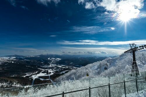 ゴンドラに乗って「霧氷テラス」へ上がれば、さらに絶景に出会えるチャンスが増えるでしょう。道内でも屈指の極上の雪質をスキーやスノーボードで滑るのはもちろん、滑走をしない人でも楽しめます。空気中の水分や霧が木々に付着する現象、“霧氷”に飾られた雪山の絶景を堪能できる霧氷テラス。さらに「Cloud Bar(クラウドバー)」や「Cloud Walk(クラウドウォーク)」など、山の上で絶景を楽しめる施設が用意されています。