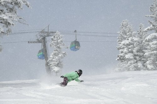 焼額山の山麓には、「志賀高原プリンスホテル」の西館、南館、東館があり、この3つのベースからコースにアクセス可能。今回は、第1ゴンドラが架かる東館のベースからコースインし、一気に標高2,000mのゴンドラ山頂まで上がる。そこから、「オリンピックコース」を通るルートへと移動していく。このコースは前日の夕方~夜間にコース整備をするため、その後に降った雪が積もったままになっている。朝一番はまずこのコースを気持ちよく滑りたい。