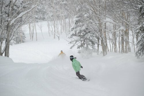 ゲレンデトップが標高2,000mを越える焼額山は、志賀高原マウンテンリゾートのなかでも上質な雪が積もるパウダーの楽園。高まりを見せるパウダーニーズに応えてくれるのが、「滑走条件付きエリア」にカテゴライズされている3つのパウダーエリアだ。いずれも急斜面の上級コースで木々の多い自然地形となるため、パトロールによる安全確認が完了し、オープンができると判断した場合のみ滑走が許される。