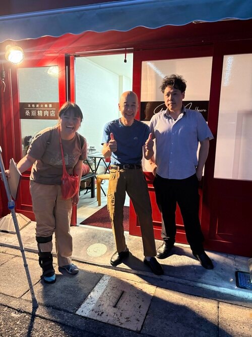荷揚げ当日は、まだ暗いうちにスーパーで最後の冷蔵食品の買い出しをした後、4時半にお肉屋さんに寄って準備万全。朝早くからお店を開けてくれたみなさん、ありがとう!