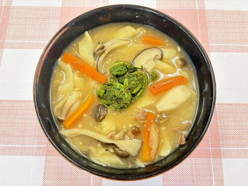安中産の食材がたっぷり入った具だくさんの豚汁と、店主が選び抜いたお米を使用したおむすびが2個のセットは1,300円(税込み)。大満足なセットになっています。
