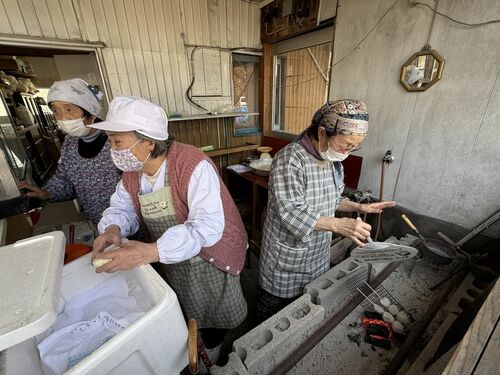 農家の奥さんたちが集まって運営しているお店。やきもちやいも串を焼いている竈はオープンになっているので、近くで見ることもできます。