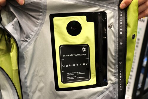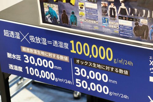 最近は、透湿性能を売りにしたレインジャケットが増えていますが、ワークマンでは、なんと透湿度が「100,000g/m2/24h」という驚異的な数値を実現した「XShelter プレミアム超透放湿ウルトラレインジャケット」を発売しました。「ワークマンのレインジャケットの持てる機能をすべて詰め込んだ、現在の集大成です」と仲野さんは胸を張って語ってくれました。