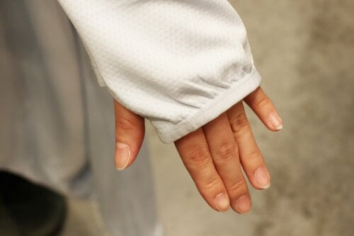 UV機能については、「後加工をしたものではなく、素材自体にUVカット機能が付いていますので、洗濯しても機能が落ちないので安心です」と長野さん。親指を通せるサムホール付きなので手の甲も守れるのもうれしいポイント。とても着心地がよく、アウトドアではとても重宝するでしょう。