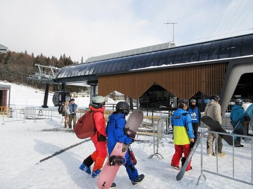 刷新されたベースセンターを見て回ってからゴンドラ乗り場に向かうと、思ったよりも並ばずに乗車できた。「朝イチ狙いの人がたちが上りきったのかも」なんて話も出たが、「輸送力の高い10人乗りゴンドラの恩恵かもしれない」とも思えた。