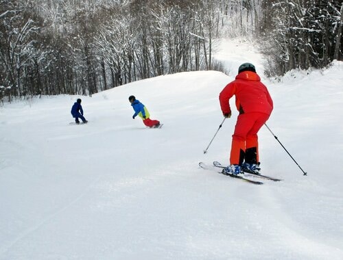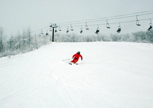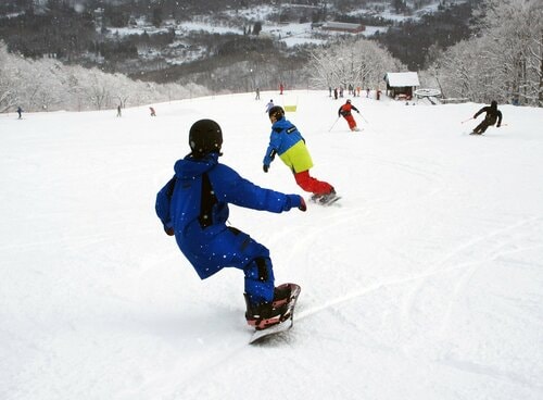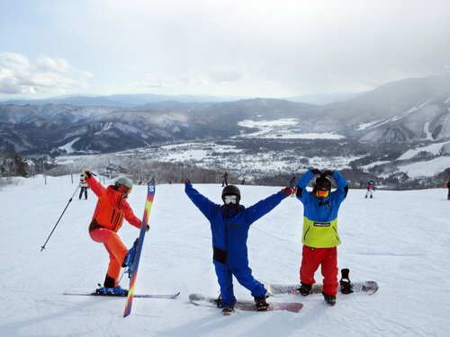 ほどよい距離と斜度の「イーストゲレンデ」で足慣らしを済ませたら、展望の良い「Iwatake Back Bowl」に移動して中斜面や急斜面を楽しんだ。スノーボーダーとスキーヤーが混在するメンバーなので、「地形遊びがしたい」、「もっと斜度のあるコースを攻めたい」などと、それぞれの要望に合わせてあちこちのコースを滑って回る。