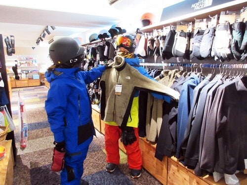 さらに、品揃えや用具のクオリティに定評のあるレンタルショップ「SPICY RENTALS」もベースセンター内に併設。パウダー目当てに訪れる人も多いのか、ファットスキーのレンタルも用意されていた。