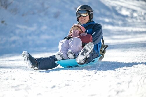 やまぼうし駐車場からスキー場の敷地に入ってすぐそばの場所にはキッズパーク「のりくランド」が設置されている。入場料は、大人500円、子どもは無料で利用できる。動く歩道を利用してソリを楽しむことができるので、まだ滑れない小さな子どもはここで雪遊びだけ楽しみにいくというのもアリ。動く歩道はスキーを履いたままでも乗ることができ、子どもの滑りの練習にも最適だ。「レストランやまぼうし」も近いので、遊び疲れたらときはここで休憩が便利だ。