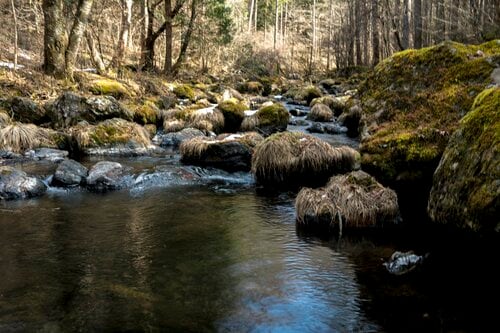 2月だというのに花粉が気になるような陽気です。まだまだ冬が恋しいのですが、早春の渓流釣りには都合がいいでしょう。「これなら多少標高が高くても釣りになるかも!」と、南佐久南部漁協が管轄する渓流へと向かいました。