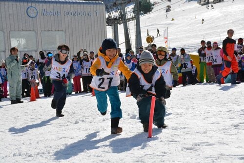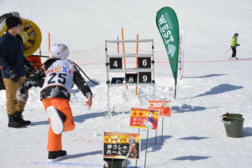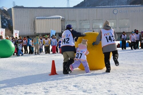 「親子スノーボード無料体験」、「雪上スキー&スノーボードスクール」が終わった後は、ゲレンデベースに用意された専用エリアで「雪育! 雪上運動会」が開催された。複数の家族で構成されたチームによる対抗戦で、雪上フラッグ、子どもの乗せたソリを引っぱる競争、大玉転がし、玉入れなどの種目が行なわれた。
