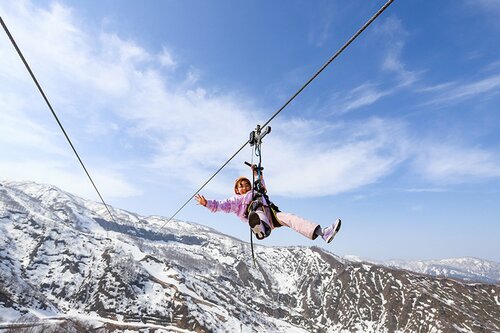 日本最大級の雪上アクティビティの充実度も見逃せません。スノーラフティングやチュービングのほか、10歳以上限定ではありますが、なんと1,501mという本州最長のジップラインが大人気! 屋内のプレイグラウンドもあるので、天気が悪い日も退屈する心配はありません。