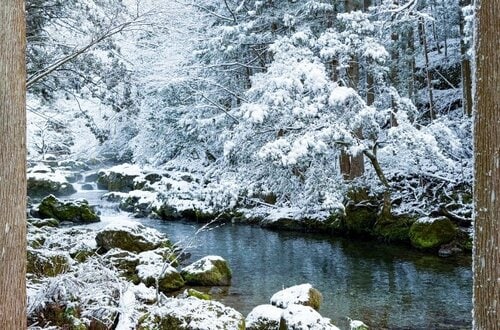 12月。他の川では水温が5℃程度まで低くなり、とても入っていられない季節だが、円原川は脅威の「11℃」をキープし続けた。