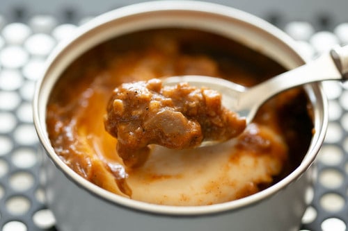 そこで、たまごをなるべく崩さないようにごはんに移し、好みの野菜をトッピングしてみた。カレーに目玉焼きやポーチドエッグをのせる食べ方があるけど、この缶詰を使えば別にたまごを用意しなくてもいい。スタンダードな味付けのレトルトカレーにミックスして、スパイスカレーにリメイクすることもできる。