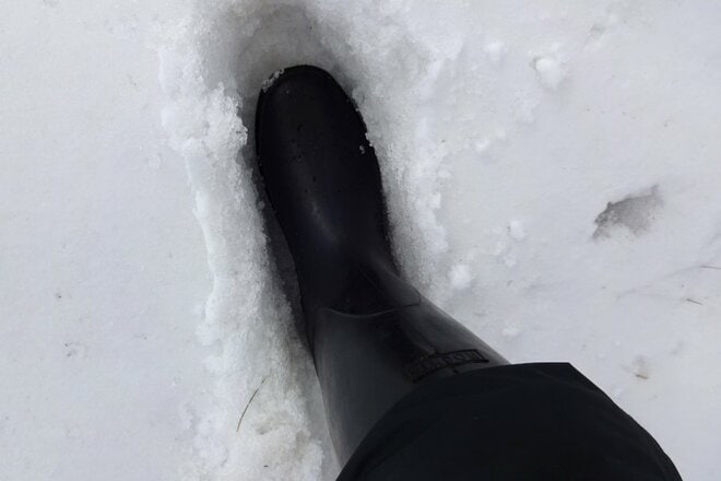 通常の靴だと場所によっては「ボコッ」という感触とともに20cmほど足が沈みこみ、歩きにくい。幸か不幸か、雪上踏破の実証実験にはもってこいのシチュエーションとなった。