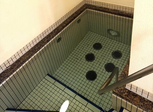 浴槽は階段式になっており、深さを調整しながら入れます。女性側でも数人がゆったり入れるサイズで、しっかりと身体を冷やすことができます。冷たすぎるのが苦手な方は、頭を流すだけでもスッキリしますよ。
