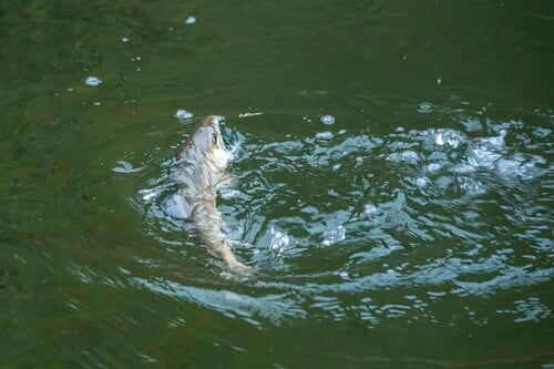2度3度、フライを流すと、いきなり魚影が反転しました! 思ったより重量感がある引きに期待が高まります。が、もう少しでネットインというところでフックアウト……。