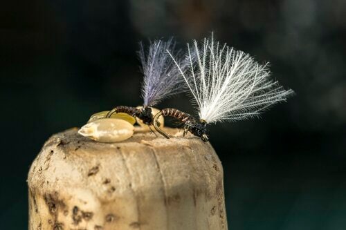 フライロッドではなく、カメラを片手にしばらく観察していると、ときおり、そよ風に乗ってユスリカではない白い極小の虫たちの集団が流れの上を行き来しています。これがカンナハネカでしょうか。