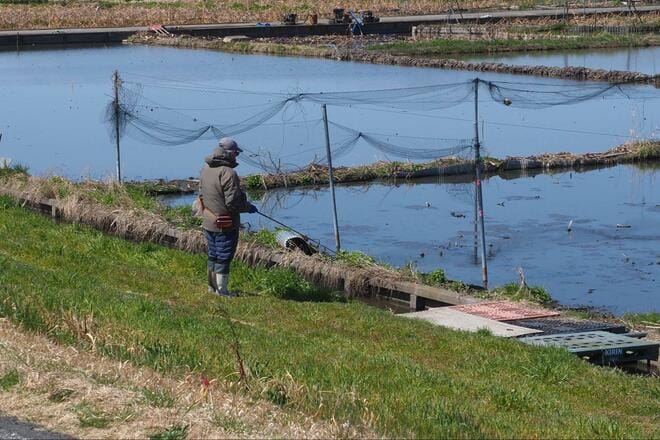 今回釣行したのは3月中旬。この時期はイネ田への通水がまだ始まっておらず、水量が少ないうえに水の動きも乏しいホソが多い。