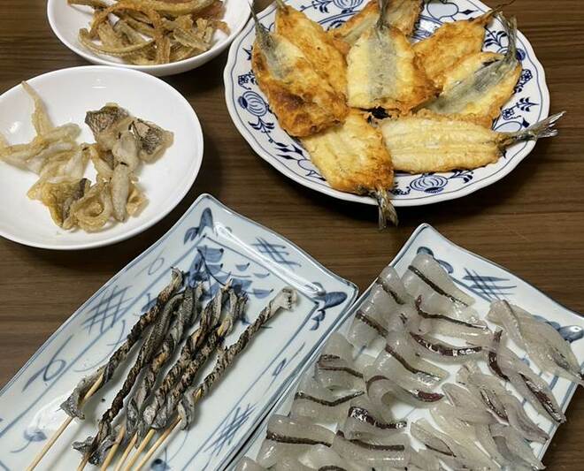 また、余った皮は串に巻きつけて焼き上げ、骨は低温の油でじっくりと揚げて骨せんべいに。天ぷらにした身は外がサクサク、中はふんわりとした食感で、上品な甘みが口いっぱいに広がった。