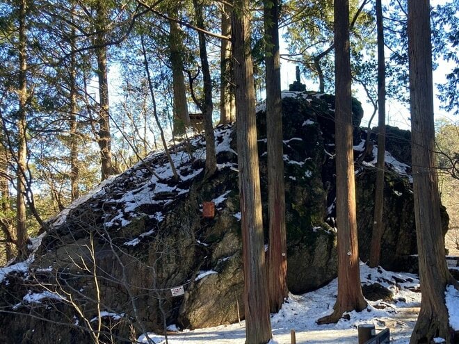 天狗岩は登ることも可能だが、筆者が訪れた時は季節外れの大雪の直後だったため登るのは控えた。岩の上には天狗が鎮座しているため、ぜひ確認してみてほしい。