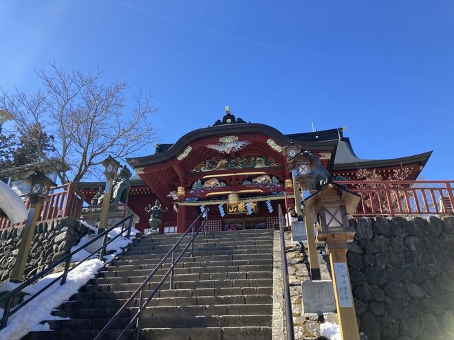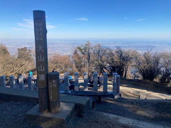 山頂に到着すると、大山阿夫利神社の本社があり、そこから関東平野を見渡すことができる。休憩できるスペースも多いため、お気に入りの場所を見つけてゆっくりと景色を堪能しよう。標高は1,200mを超えるので、ゆっくりと景色を満喫するために春でも防寒着は必須。温かい飲み物もあるといいだろう。