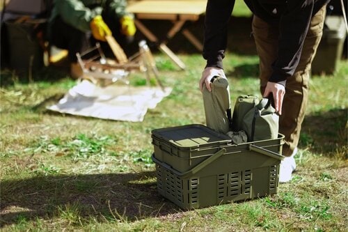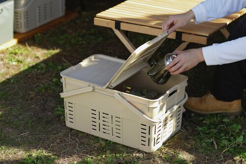キャンプの撤収時に、散らばった小物を一気に詰め込んで車まで運びたいとき、片手が空いているのは大きなメリット。両手で抱える必要がないので、足元の安全を確認しながらスムーズに搬入・搬出ができるのはうれしい限り。