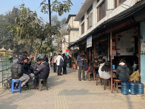 7時ごろにはチヤ(ミルクティー)。ここでビスケットやドーナツをつまむことも多い。そして9時ごろに、最初のダルバートをとる。