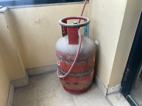 ガスは日本のような都市ガスではなく、赤いボンベのLPGガス(プロパンガス)を使う。かつては一部の富裕層のものだったが、今では都市部の家庭では当たり前の存在だ。