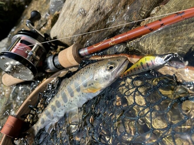 今回は高津川水系で、クラシカルなベイトリールを組み合わせたタックルを手に、ミノーを使った渓流釣りを楽しんできた。澄んだ流れの中で出会ったのが、30cmを超える大型のヤマメ(尺ヤマメ)。自然の中で出会う一尾は、特別な存在となった。