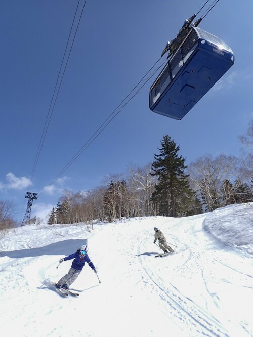 旭岳でスキーというと、パウダーやBC目的の人ばかりだが、純粋にゲレンデスキーとしても楽しめる場所だ。4つあるコースはそれぞれ変化に富んでいる。上部は森林限界を超えたアルパインエリア、下部は大雪山の原始林の中にコースがある。