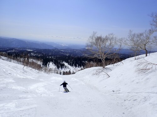緩やかな緩斜面も多いが、所々急な斜面もあるので、ある程度の滑走技術は必要。滑走距離は3kmほどあり、景色も楽しみながら滑れば飽きることはない。まさにファミリースキーにうってつけのゲレンデ。普通のスキー場にはないワクワク感に満ちたコースが特徴だ。ロープウェイの運行間隔に合わせて滑るので、リフト回しのように滑り続けるわけではないが山を滑るスキーの楽しさを存分に味わうことができるスキー場だ。