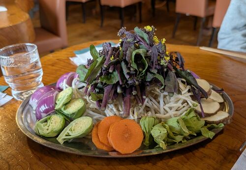 前菜をいただいている間に、ジンギスカンと一緒に焼くお野菜が運ばれてきました。