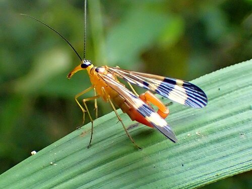 ヤマトシリアゲの春型では全身黒い姿をしているが、夏型になると体が赤くなり、大きく雰囲気が変わるのだ。