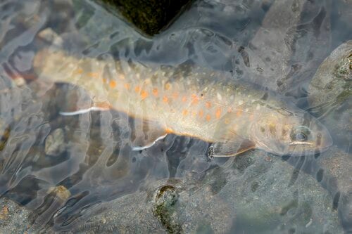 パーマークが目立つ魚体は、まるでヤマメのよう。いや、体側に散りばめられた朱点はアマゴの方が近いでしょうか。艶やかでありつつも透明感あふれる瑞々しい魚体は目が覚めるように美しく、そして目立ちます。なぜ、ここまで派手な必要があるのかと思ってしまいます。