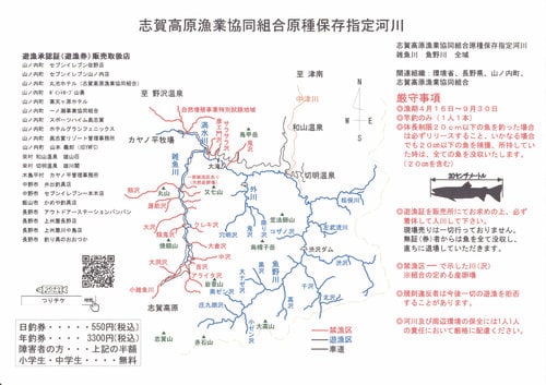 遊漁料金はリーズナブルで、日釣りは550円! 道中のコンビニや志賀高原のいくつかのホテル、さらに「フィッシュパス」と「つりチケ」でも購入できます。無券での釣りは違法ですので、購入したうえで釣りを楽しみましょう。