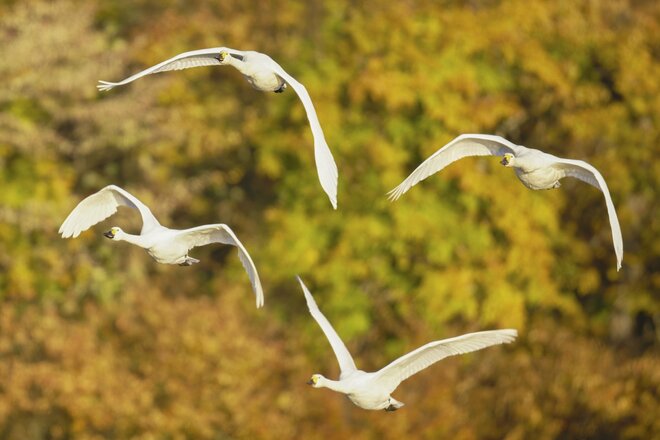 BRAVO MOUNTAIN アクティビティ 圧巻! 城下町 鶴岡で色鮮やかに輝く里山をバックに4,000羽のハクチョウが空を舞う「地球温暖化で生まれた水鳥の楽園」を訪ねる 【山形県】2025年 画像・写真:圧巻! 城下町 鶴岡で色鮮やかに輝く里山をバックに4,000羽のハクチョウが空を舞う「地球温暖化で生まれた水鳥の楽園」を訪ねる 【山形県】2025年【合計13枚】 2025.11.13 アクティビティ その他アクティビティ 紅葉の高館山と多くの水鳥の憩いの場である大山下池(1/13) 霧で白く霞む日の出前の湖面。コハクチョウが出発の時を迎えようとしていました(2/13) まるで錦絵! 池に朝日が届くと、紅葉で染まった山を舞台に華やかなショーの幕開けです(3/13) 足で水を蹴り、力強く羽ばたいてテイクオフ!(4/13) 赤や黄色に染まった中を純白のコハクチョウが舞う様子はまさに絶景(5/13) 胸に見える黒いものは「コハクチョウの大好物」ヒシの実。野鳥に運んでもらって生息域を広げ(6/13) 調査のため首輪をつけられた個体を見つけました(7/13) 朝、周辺の水田に向かうコハクチョウ。奥に見えるのは「東北の名峰」鳥海山(8/13) 池のすぐ裏の水田をえさ場として選択する群れも。これでは少し運動不足気味かと……(9/13) 西日を浴びながら夕食をたっぷり胃袋に詰め込んでいるようです(10/13) 強い夕陽の光で体をオレンジ色に染めたコハクチョウが、池に向かって真っすぐ飛んでいきます(11/13) 竿になり鍵になりながら、日暮れの空をねぐらに向かって急ぎます(12/13) この日は、今年最大の満月の前日。ほぼまん丸の月を眺めながらコハクチョウのねぐら入りを見送ることができるのは最高の贅沢です(13/13) 記事本文に戻る